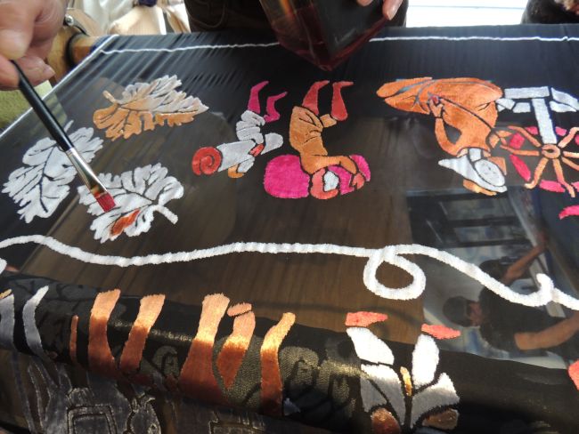 Then he also demonstrated the hand painting on a silk and ryon material.
